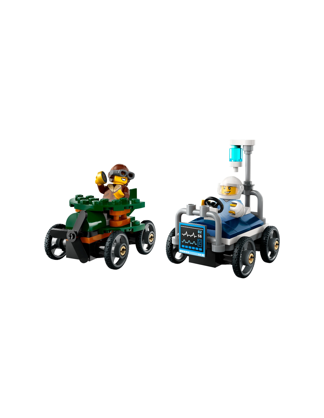 ¡Sorprende a tu pequeño fan de las carreras con el set LEGO® City Pack de Coches de Carreras: Avión vs. Cama de Hospital (60459)! Este divertido juguete para niños y niñas a partir de 5 años cuenta con 2 coches de carreras de juguete y 2 minifiguras. Los peques pueden enfrentar a la piloto en el avión de altos vuelos y el paciente en la veloz cama de hospital. ¿Quién ganará? ¡Toma asiento y vibra con las épicas carreras urbanas!