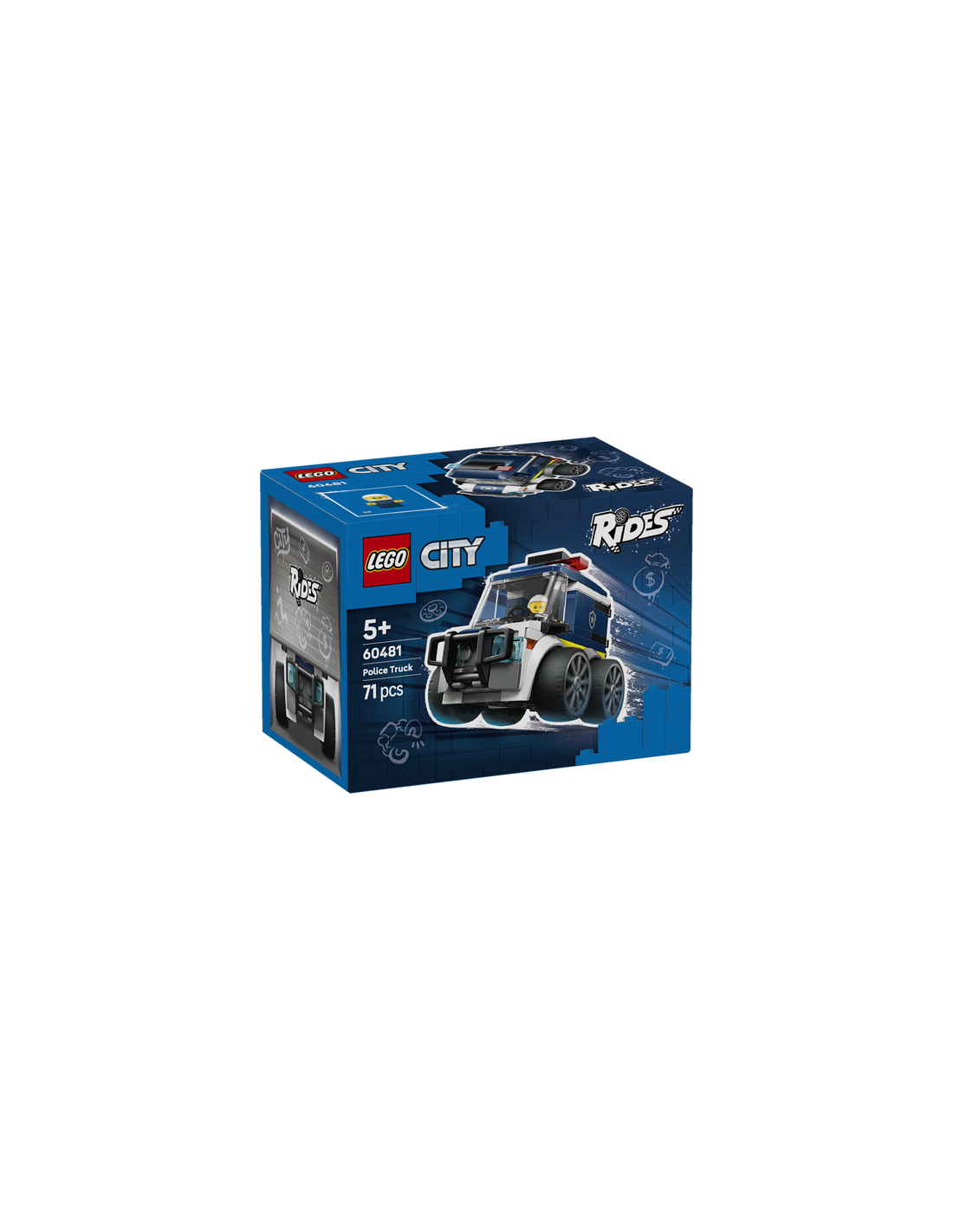 ¡Desata trepidantes aventuras policiales con el minikit de construcción LEGO City Vehículos: Furgoneta de Policía (60481) para mayores de 5 años! Esta compacta furgoneta de policía de juguete construible con modernas llantas, neumáticos de goma de perfil bajo, parachoques de empuje, barrotes de prisión y luces de emergencia de juguete ofrece a tu joven constructor una divertida forma de explorar el mundo de LEGO City. El set incluye también una minifigura de un agente de policía LEGO City Vehículos que cabe perfectamente en la cabina. Esta furgoneta de policía fácil de construir, parte de la colección LEGO City Vehículos, es un regalo ideal para niños y niñas pequeños que adoran los coches de juguete y el juego imaginativo. Combínala con otros sets LEGO City (a la venta por separado) para vivir más aventuras. El set LEGO City Vehículos: Furgoneta de Policía reserva a los niños una intuitiva experiencia de construcción con la app LEGO Builder y sus instrucciones 3D. Contiene 71 piezas.