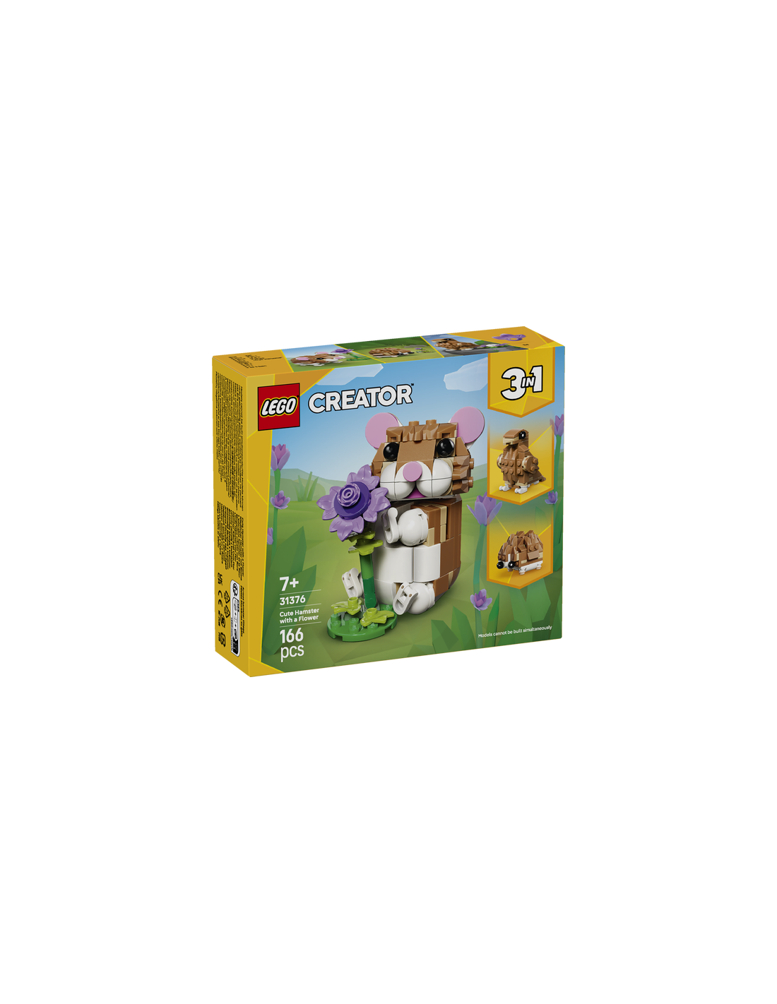 Las niñas y los niños a partir de 7 años con pasión por los animales se lo pasarán genial interpretando divertidas historias con el juguete LEGO Creator “3 en 1” Lindo Hámster con Flor (31376), que les permite construir 3 animales alternativos con los mismos ladrillos. Los peques pueden construir un hámster de juguete con cabeza y patas delanteras articuladas y una flor violeta. También pueden reconstruirlo para convertirlo en un erizo de juguete con una flor o en un águila articulada con su huevo en un nido. Una vez terminadas las sesiones de construcción y juego, cada lindo modelo se puede exponer en una estantería o un escritorio. Este set LEGO Creator “3 en 1” es un simpático regalo para pequeños amantes de los animales que disfrutan jugando a imaginar. Además, con la app LEGO Builder, que ofrece instrucciones 3D y diversas herramientas, podrán vivir una sencilla e intuitiva aventura de construcción. Los modelos no se pueden construir simultáneamente. El set contiene 166 piezas.