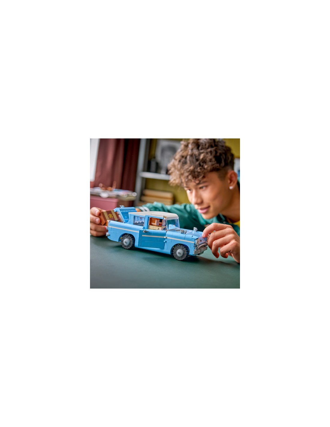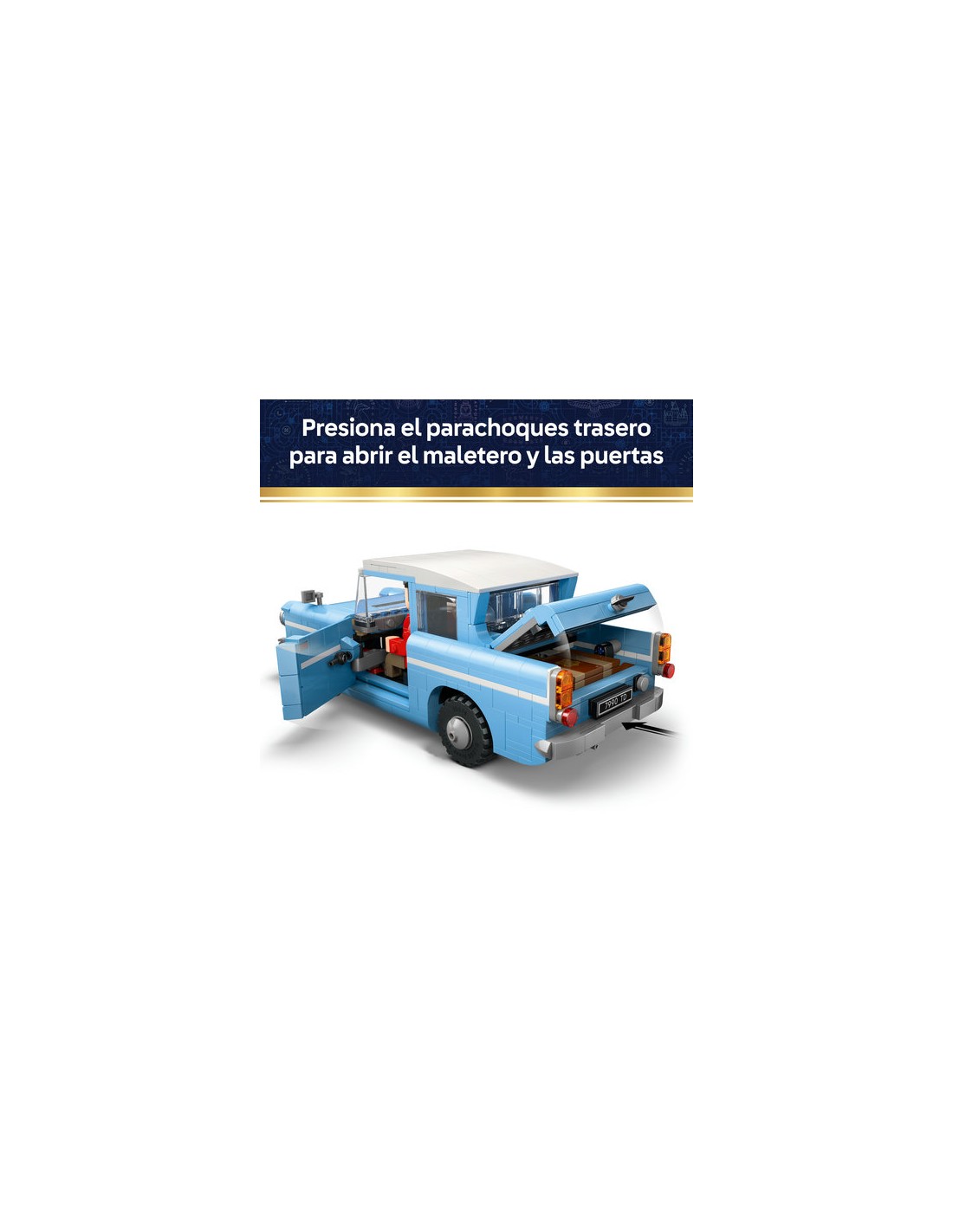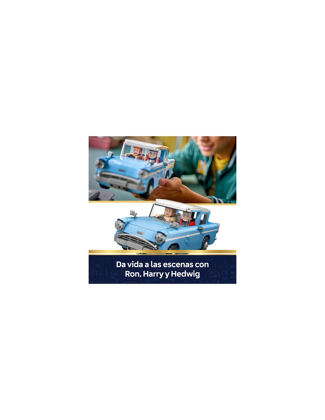 Pon la magia del Ford Anglia Volador Encantado de los Weasley en las manos de tu joven mago, bruja o Muggle con este set de construcción del famoso coche (76470) para exponer y jugar. Un superregalo del universo Harry Potter para niños, niñas yfans a partir de 14 años, es el modelo LEGO más detallado que existe hasta ahora del emblemático vehículo. Coloca las figuras para construir de Ron Weasley y Harry Potter en el coche, así como a Hedwig, la mascota de Harry, y da vida a las escenas d e Harry Potter y la cámara secreta. Activa funciones mágicas tanto para abrir el maletero y las puertas como para hacer que el equipaje de nuestros héroes salga volando del maletero, igual que en la película. Los peques podrán construir con confianza gracias a la app LEGO Builder, que les permite acercar su modelo, girarlo en 3D y consultar su progreso con instrucciones digitales fáciles de seguir. El set contiene 868 piezas.