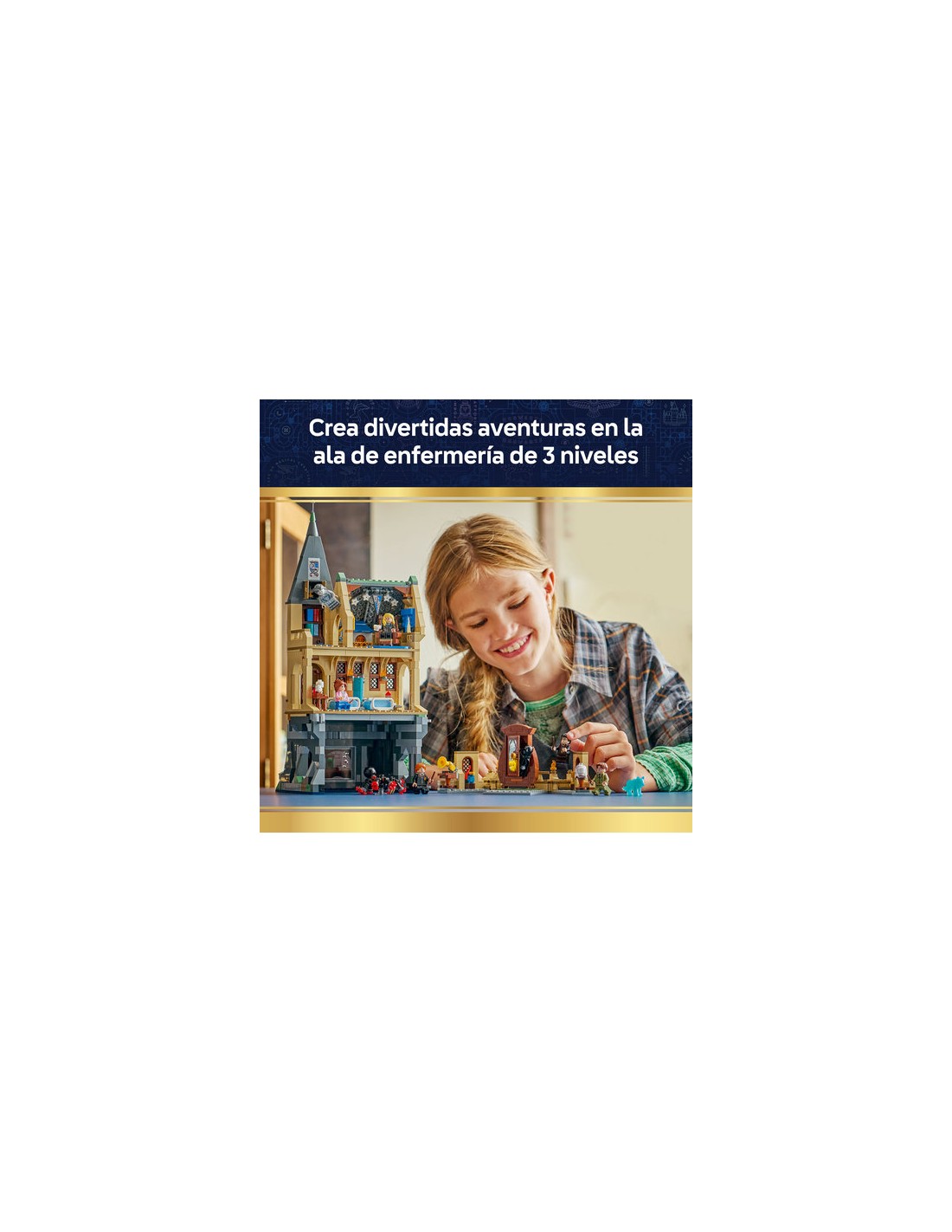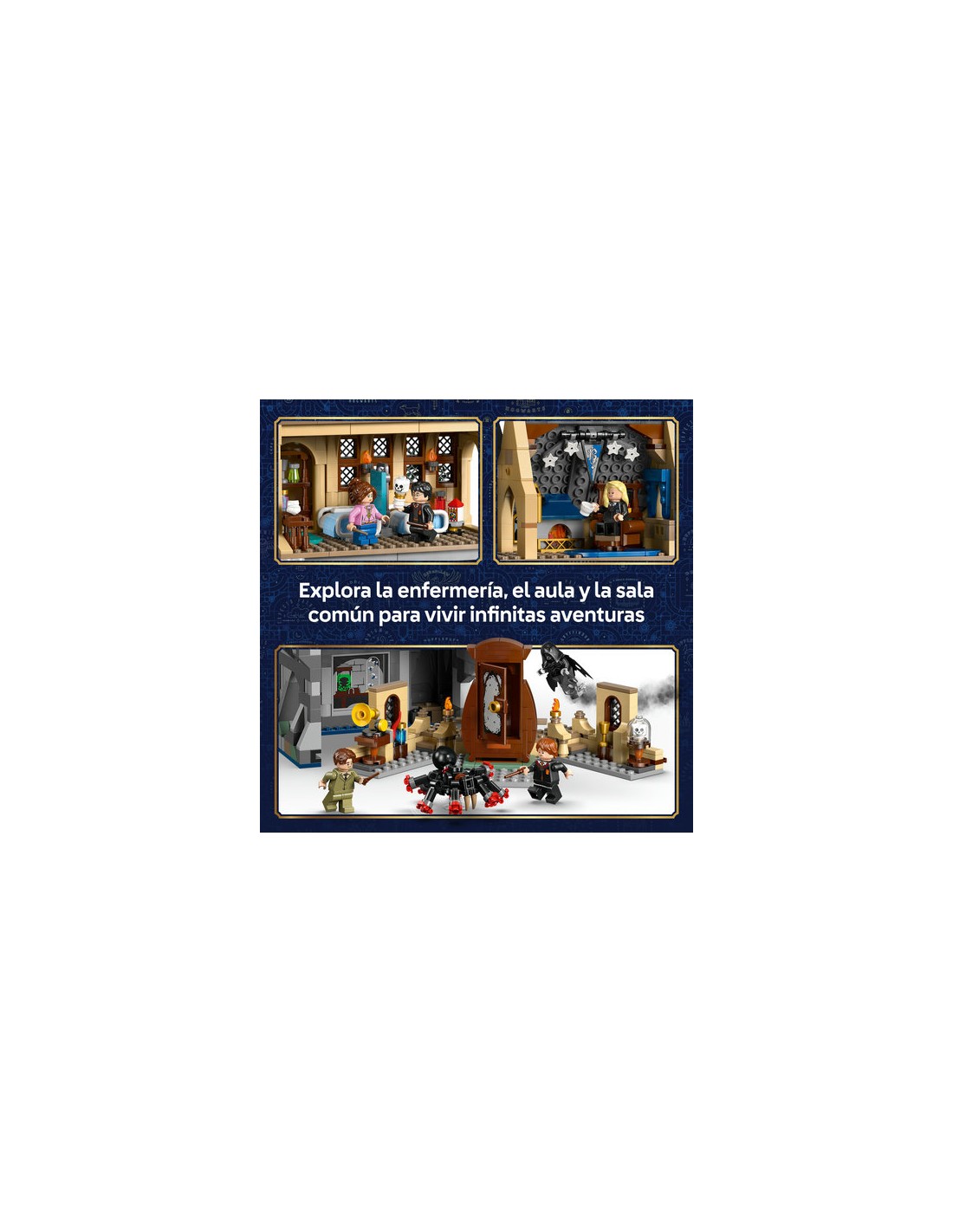 Interpreta encantadoras escenas de Harry Potter™con el juguete de construcción Castillo de Hogwarts: Ala de Enfermería (76463). Visita a los pacientes, recrea las clases de Defensa Contra las Artes Oscuras y únete a Penelope Clearwater y la DamaGris en la sala común de Ravenclaw. Este set del Castillo de Hogwarts, un divertido juguete del universo Harry Potter ideal como regalo para niñas, niños y fans a partir de 9 años, cuenta con 7 minifiguras LEGO Harry Potter, entre ellas el Dementor™ d e Harry Potter. Incluye también la araña de Ron Weasley y el Patronus, lobo de Remus Lupin, uno de los Patronus coleccionables que integran la edición del 25.º aniversario (a la venta por separado). Quita el aula para jugar cómodamente y busca 2 retratos de Hogwarts (de los 14 que componen la colección). Este set pertenece a una colección de juguetes modulares (a la venta por separado) que, juntos, crean un detallado Castillo de Hogwarts construido con ladrillos LEGO. Contiene 907 piezas.