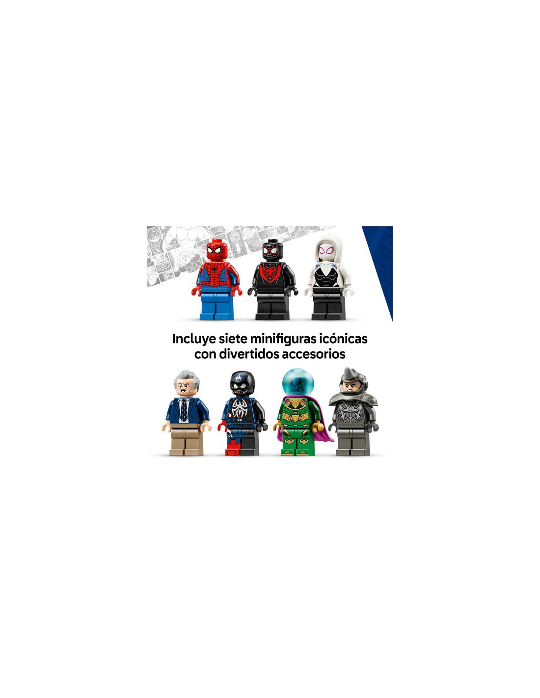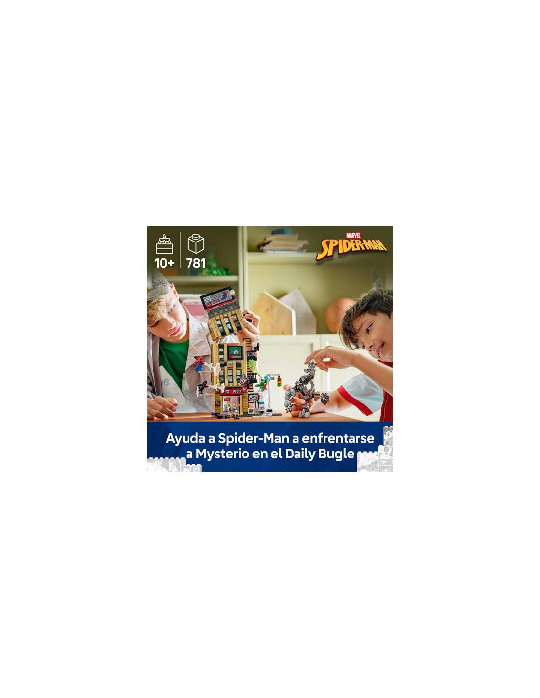 Explora 4 niveles de acción superheroica con el set Spider-Man vs. Mysterio: El Daily Bugle (76342), un juguete de construcción ideal como regalo para niños y niñas a partir de 10 años. Rebosante de minifiguras LEGO ǀ Marvel y aventuras basadas en el juego simbólico, construir este set coleccionable es tan divertido como jugar con él y exponerlo. El edificio de juguete del Daily Bugle LEGO ǀ Marvel incluye minifiguras de Spider-Man, Miles Morales, Spider Fantasma, J. Jonah Jameson, Mysterio, el Capitán América Venomizado y Rino, así como 3 varillas y 2 ladrillos transparentes para crear escenas aéreas. También encontrarás el meca articulado de Rino. En el detallado interior hay oficinas, recepción, equipos de redacción, caja fuerte y una palanca para cambiar la valla publicitaria. En el exterior hay escalera de incendios, un quiosco de prensa móvil y una esquina de calle con semáforo. Descarga la app LEGO Builder para construir el set con amigos y familiares. Contiene 781 piezas.