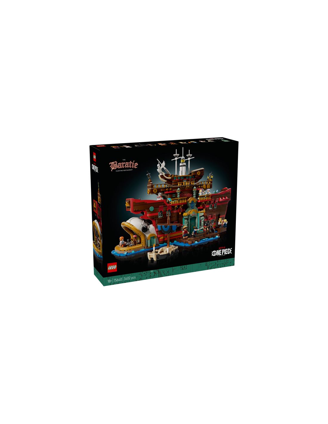 El Restaurante Flotante Baratie LEGO ONE PIECE (75640) recrea el emblemático escenario de numerosas aventuras de ONE PIECE, la serie de acción real de Netflix. El modelo, un estupendo regalo para fans adultos de ONE PIECE, incluye fieles detalles y un fabuloso elenco de personajes de la serie en versión de minifigura.