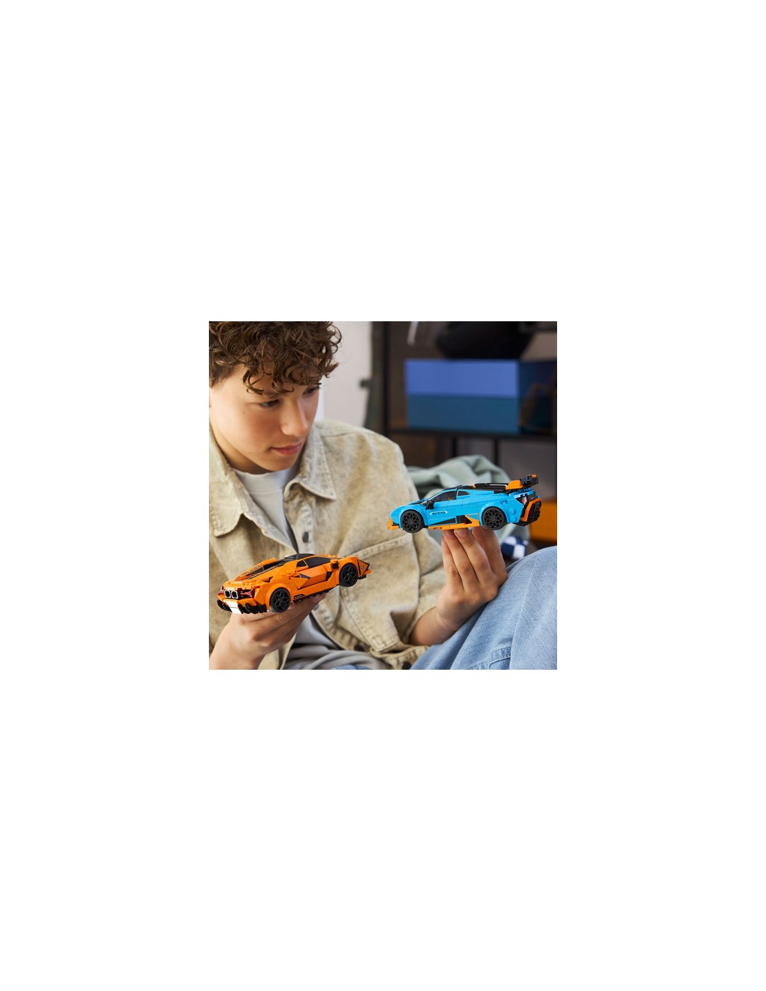El Revuelto, con su motor V12, es el modelo más potente del fabricante de coches italiano, mientras que el Huracán STO está diseñado tanto para la calle como para el circuito. Ambos coches de juguete reproducen con fidelidad detalles de los Lamborghinis de la vida real, como las tomas de aire, los alerones o los futuristas faros y luces traseras con forma de Y. Cada coche viene con una minifigura de un conductor.