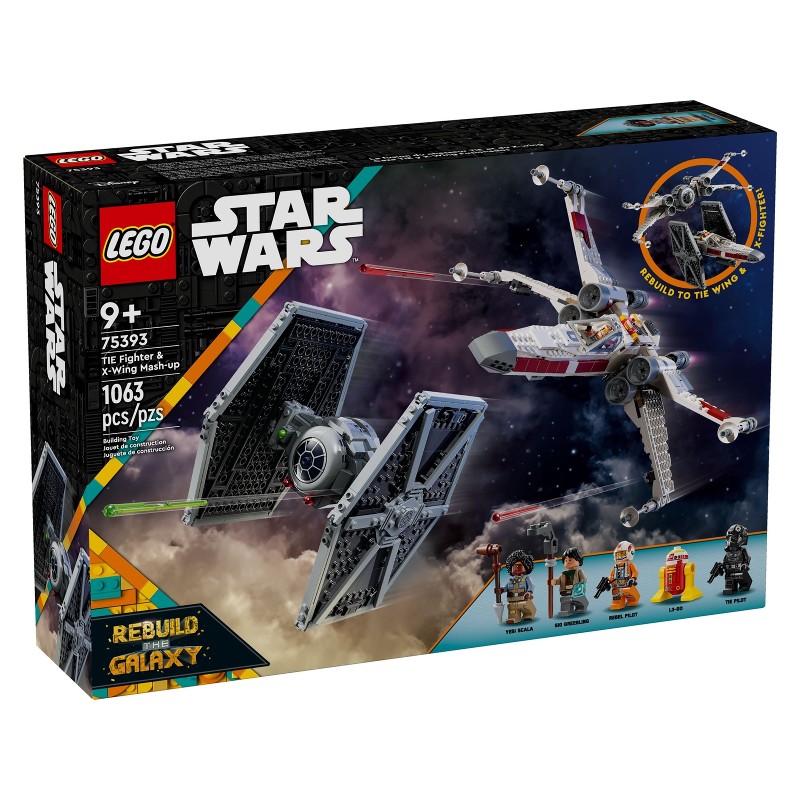 - Set Caza TIE y Ala-X Fusionados: Crea los cazas estelares fusionados “Ala-TIE” y “caza X” que aparecen en el especial de Disney+ Reconstruye la Galaxia con este juguete infantil LEGO® Star Wars™ construible