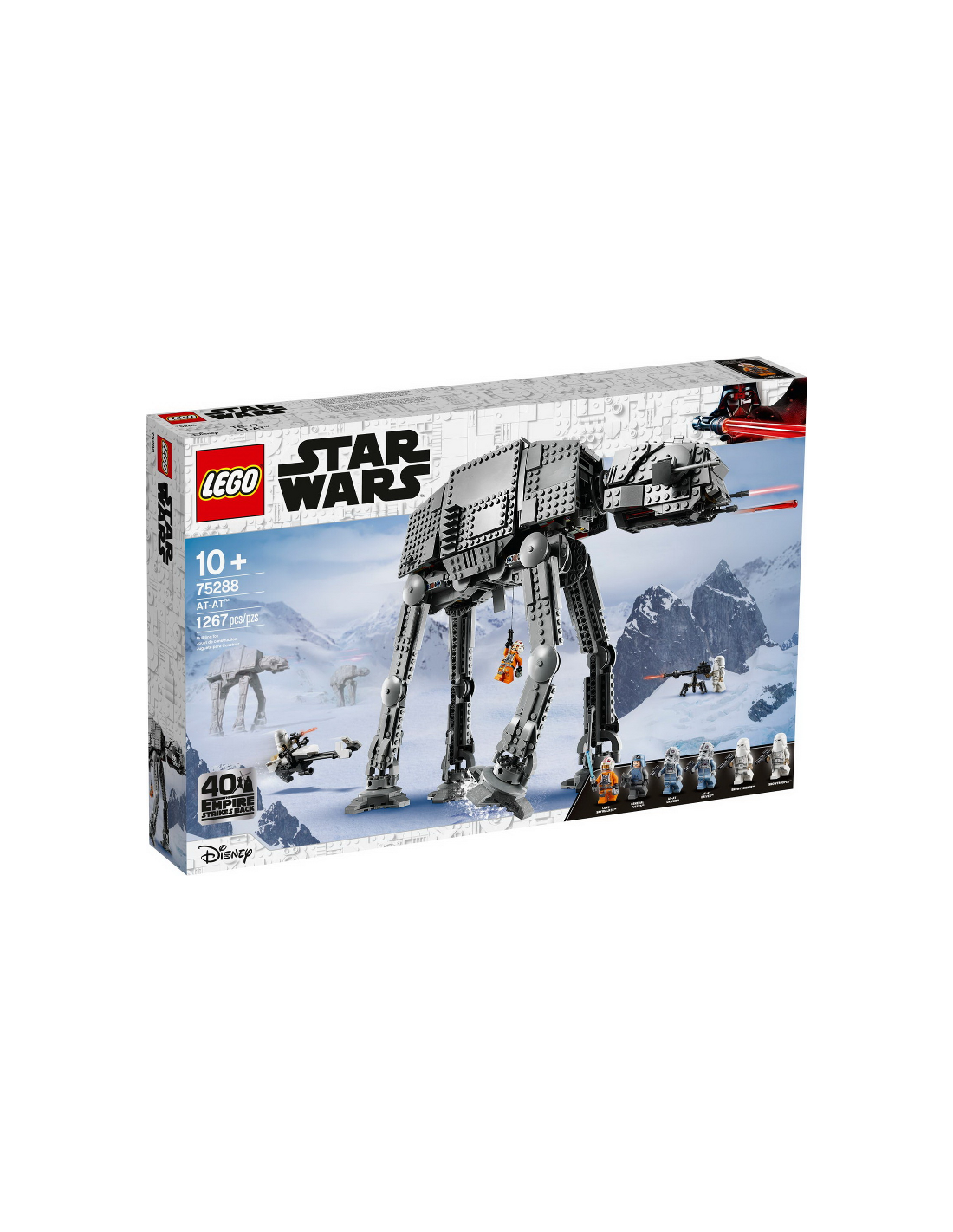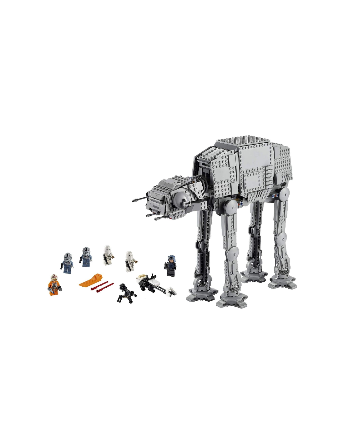 Este trepidante set incluye 6 minifiguras LEGO: Luke Skywalker, el General Veers, 2 conductores de AT-AT y 2 soldados de las nieves. Todas llevan armas (como la espada láser de Luke y el arma con trípode de los soldados de las nieves) que servirán de fuente de inspiración para interpretar misiones al más puro estilo Star Wars.