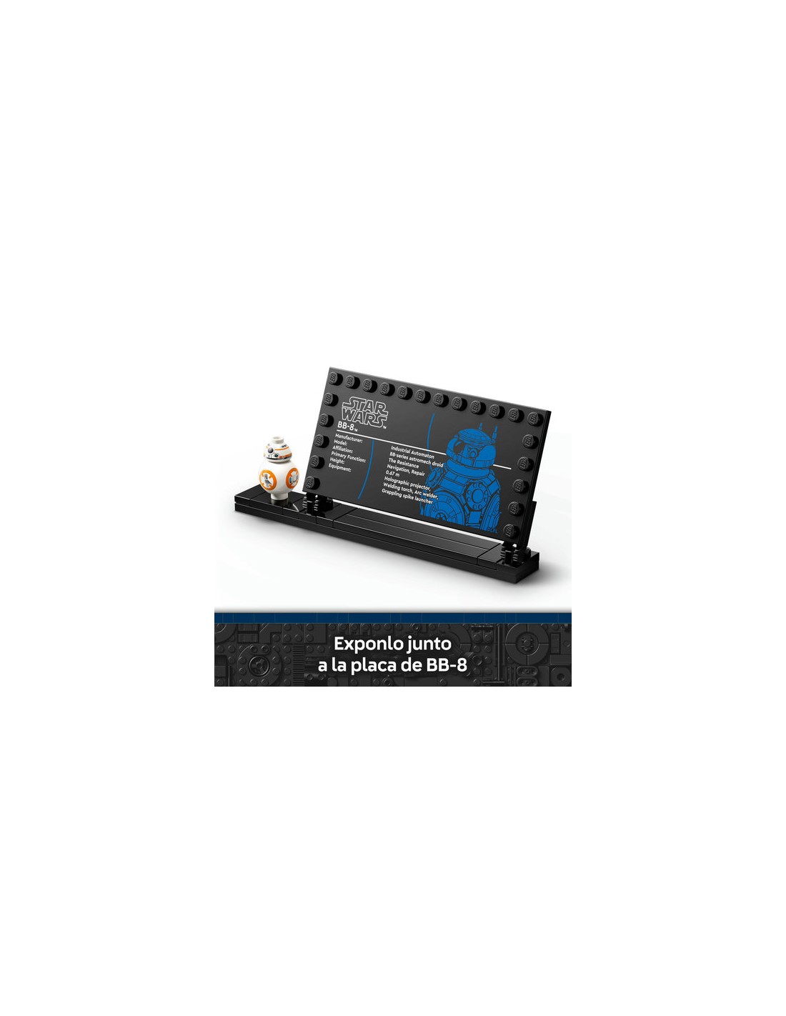 Coloca el modelo construible junto a la placa informativa de BB-8 y la figura LEGO de BB-8 de tamaño estándar para crear una adorable pieza de decoración basada en Star Wars que sacará una sonrisa a cualquier fan.