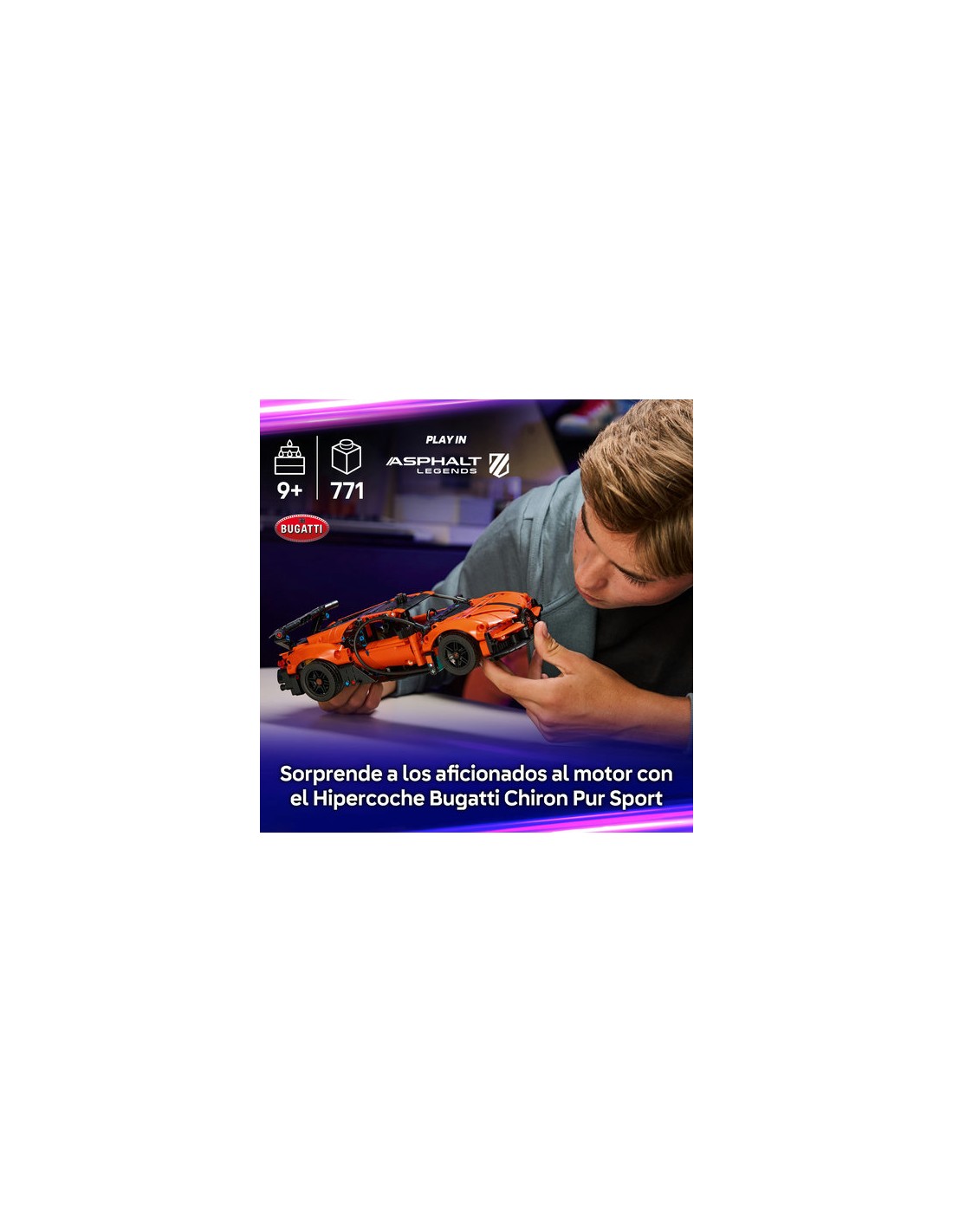 Emociona a los fans de las carreras con el set LEGO Technic Hipercoche Bugatti Chiron Pur Sport (42222) para niños y niñas a partir de 9 años. El coche tiene un montón de características geniales para que los entusiastas de los vehículos las exploren. Gira el volante usando el mando de la parte superior del modelo del hipercoche y, después, echa un vistazo al motor W16 y a las puertas y el capó que se abren. El set viene con un código canjeable para desbloquear una versión digital de este coche LEGO Technic en el videojuego en línea ASPHALT LEGENDS. Los peques se lo pasarán en grande construyendo y jugando con su modelo de vehículo. Después, cuando llegue el momento de una nueva actividad, podrán jugar y competir con la versión digital en el juego. Este set es un divertido regalo para peques aficionados a los juguetes de carreras. Los sets LEGO Technic cuentan con movimientos y mecanismos realistas que introducen a los jóvenes constructores LEGO en la ingeniería de una manera accesible y realista. Los peques pueden construir con confianza usando la app LEGO Builder: acerca, gira en 3D y controla tu progreso con instrucciones digitales fáciles de seguir. El set contiene 771 piezas.