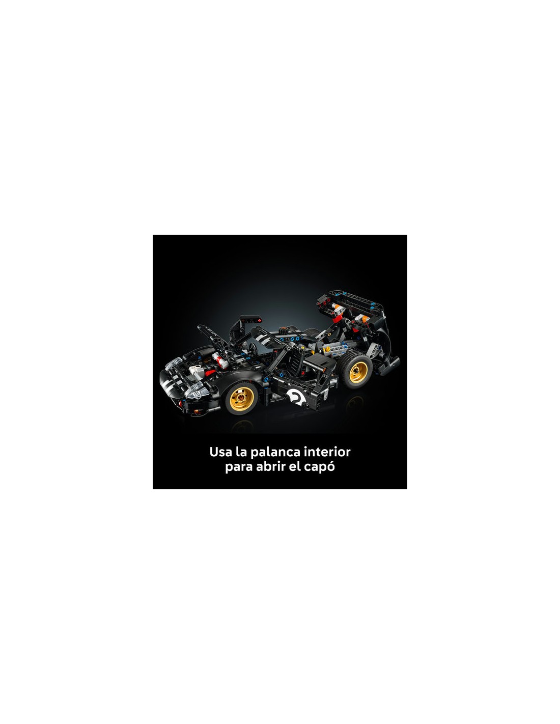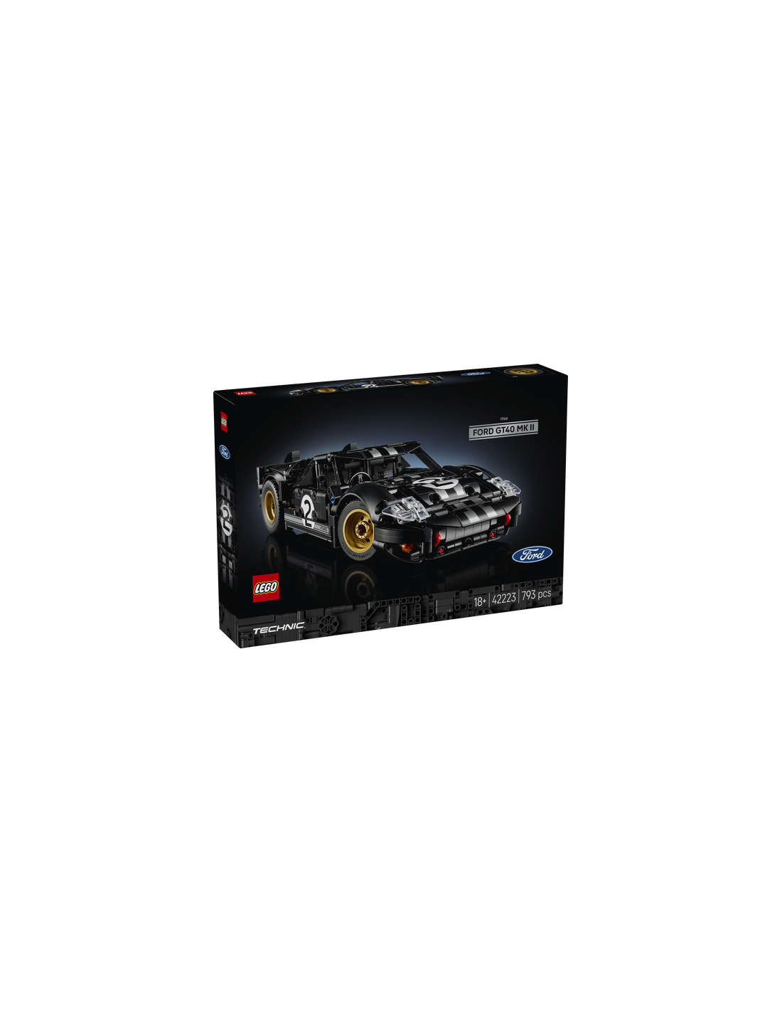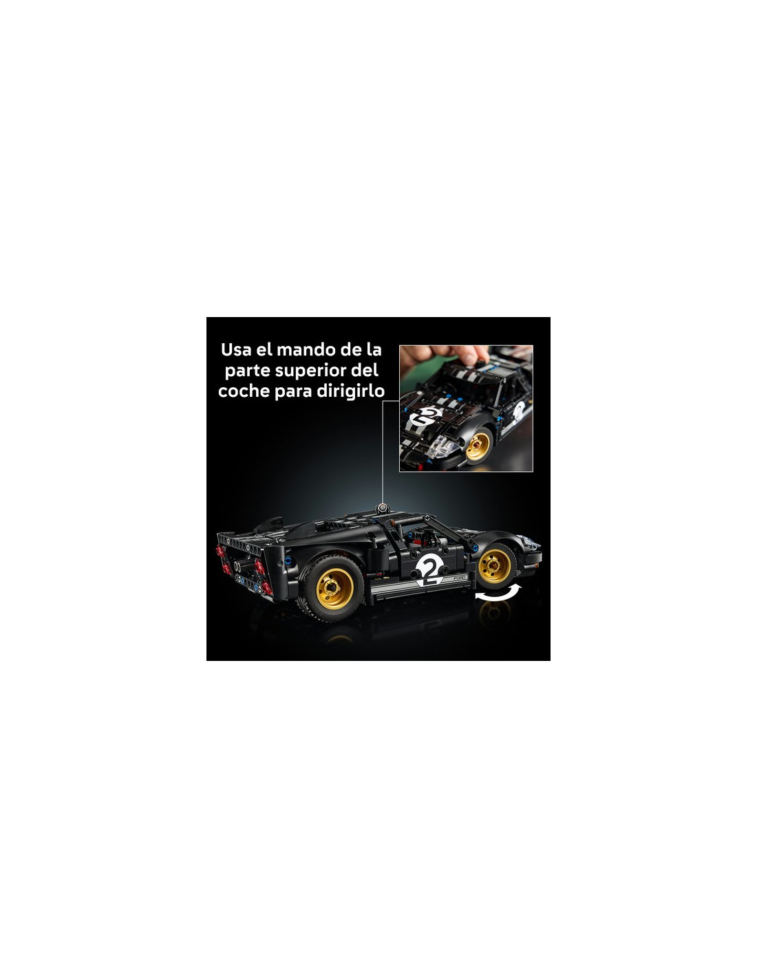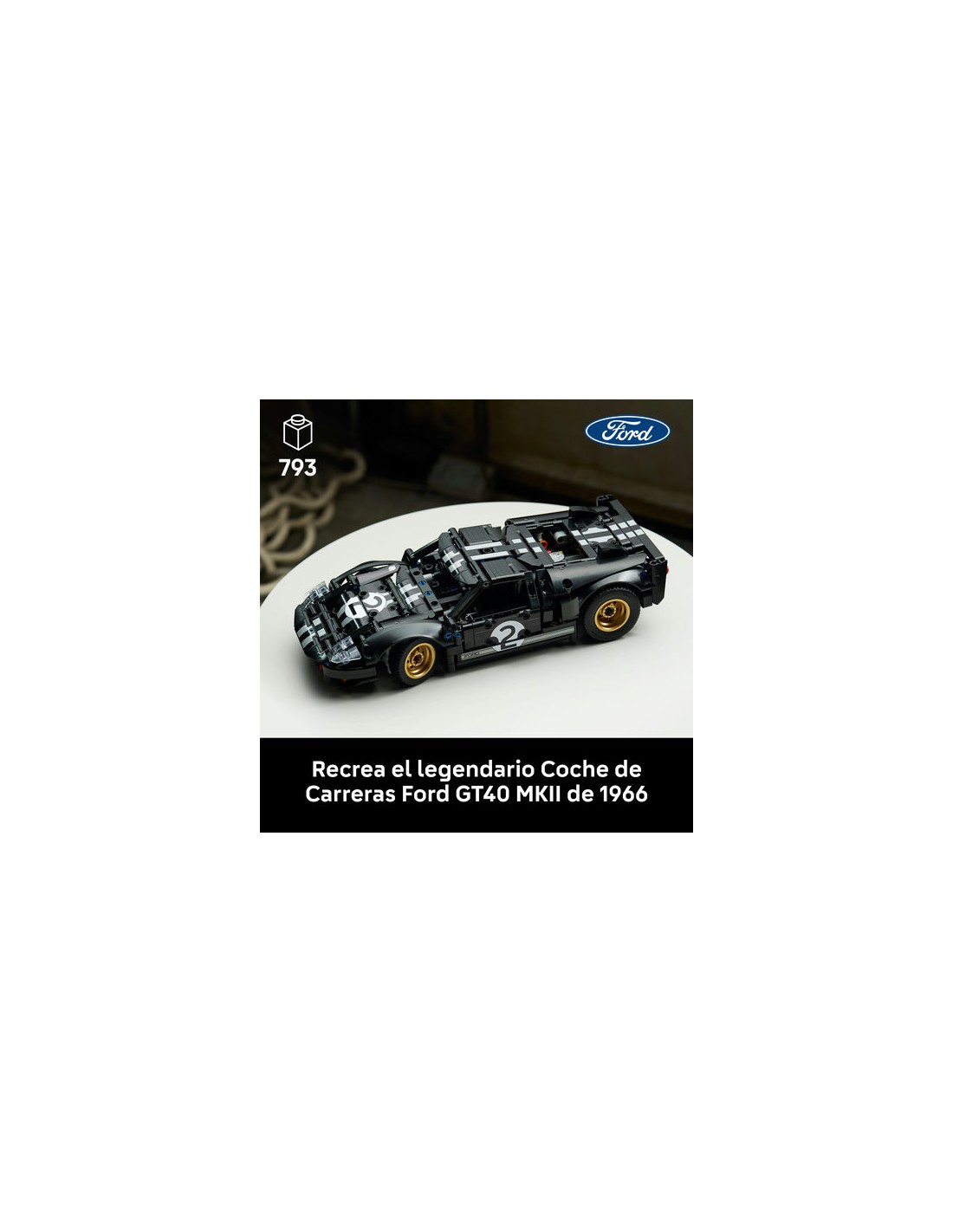 Conduce hacia la victoria y rinde homenaje a un icono del automovilismo con este modelo LEGO Technic Coche de Carreras Ford GT40 MKII de 1966 (42223) para adultos. Los amantes de los coches, los fans de las carreras y los entusiastas de la construcción a partir de 18 años pueden invocar el espíritu de la carrera de resistencia más prestigiosa del mundo con esta realista versión en maqueta de un emblemático coche de época. Diviértete explorando las detalladas características del set. Usa el mando de la parte superior del coche para dirigirlo. Echa un vistazo a las puertas que se abren y admira la decoración en negro y plata inspirada en el coche campeón de la vida real. Abre la cubierta del motor para descubrir el motor V8 y, después, usa la palanca interior para abrir el capó. Una vez construido, puedes exponer con orgullo tu coche de carreras en cualquier habitación u oficina. Alimenta tu deseo de kits de construcción de vehículos de alto rendimiento con la gama de coches de colección LEGO Technic para adultos. Disfruta de una construcción mejorada con la app LEGO Builder, que te permite acercar y girar modelos con instrucciones en 3D, así como guardar sets y controlar tu progreso, todo desde la app. El set contiene 793 piezas.