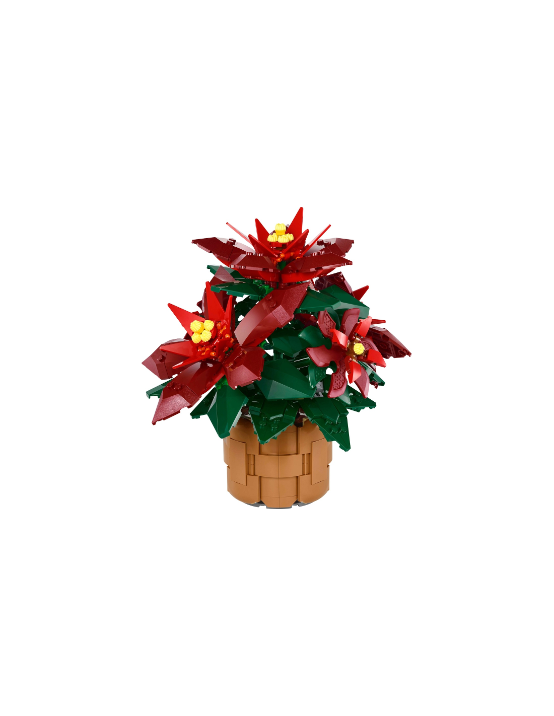 Planta LEGO articulada: Esta interpretación LEGO de esta clásica planta navideña está articulada y cuenta con hojas verdes y 5 grupos centrales (brácteas) en forma de estrella de hojas rojas con ciatos amarillos.