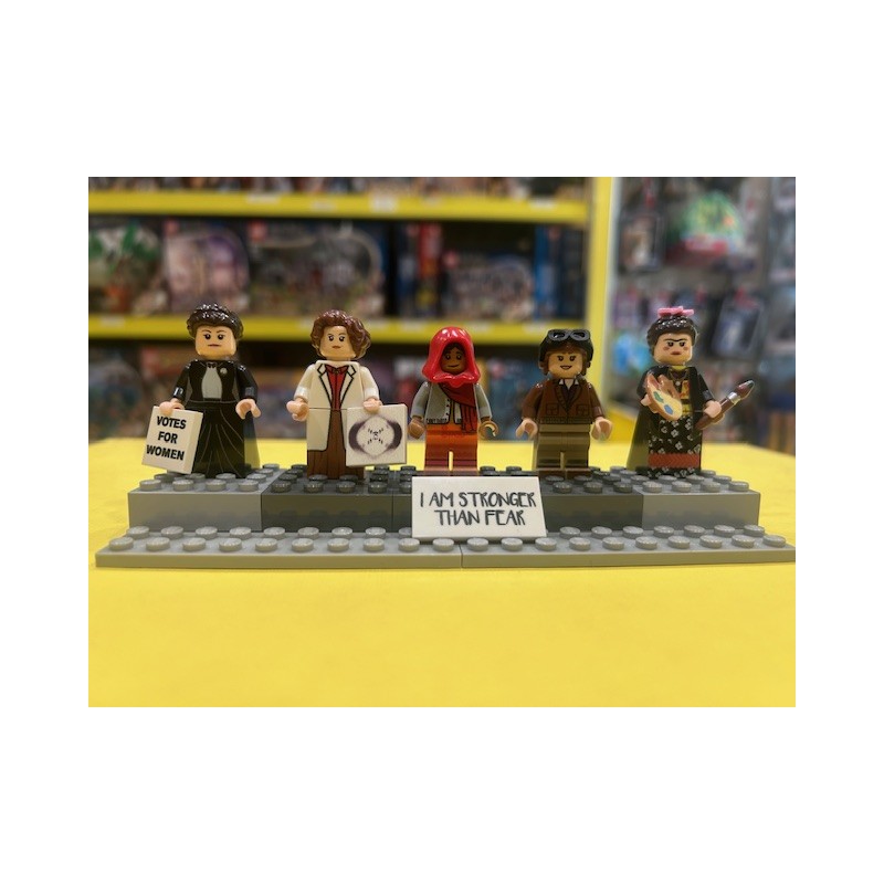 Las minifiguras incluyen recreaciones detalladas de la extraordinaria piloto Amelia Earhart, la líder sufragista Emmeline Pankhurst, la científica Rosalind Franklin, la artista Frida Kahlo y la activista educativa ganadora del Premio Nobel Malala Yousafzai. Todos han sido hechos con encantadora atención al detalle y cada uno tiene una cita de su contraparte de la vida real impresa en la espalda.