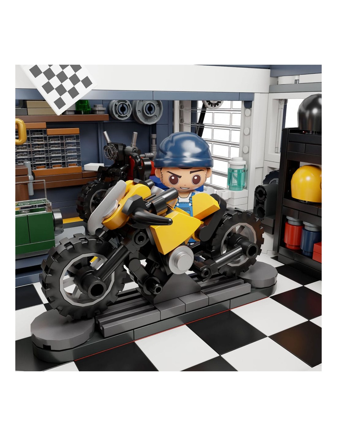 - Incluye cinco minifiguras de estilo "super deform" (con cabezas grandes) que representan a los personajes del restaurante y el taller.